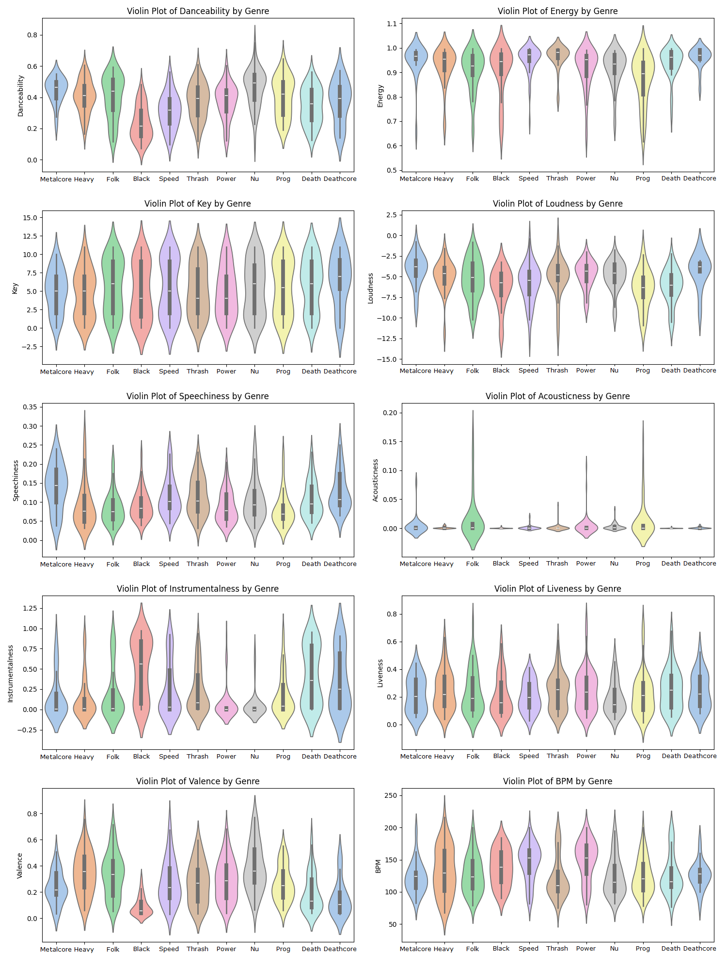 - European Heritage: Scandinavian black metal acts displayed unique acousticness patterns reflecting the region’s folk music integration